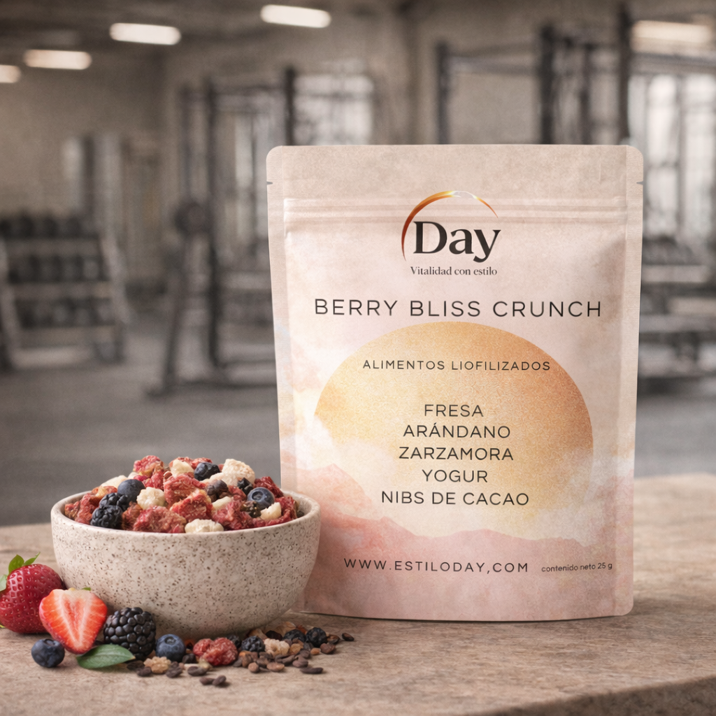 Berry Bliss combina frutos rojos liofilizados con trozos de yogur griego y nibs de cacao para un snack balanceado entre acidez, cremosidad y crunch.Diseñado para sentirse elegante, estable y con textura real (sin polvo).
