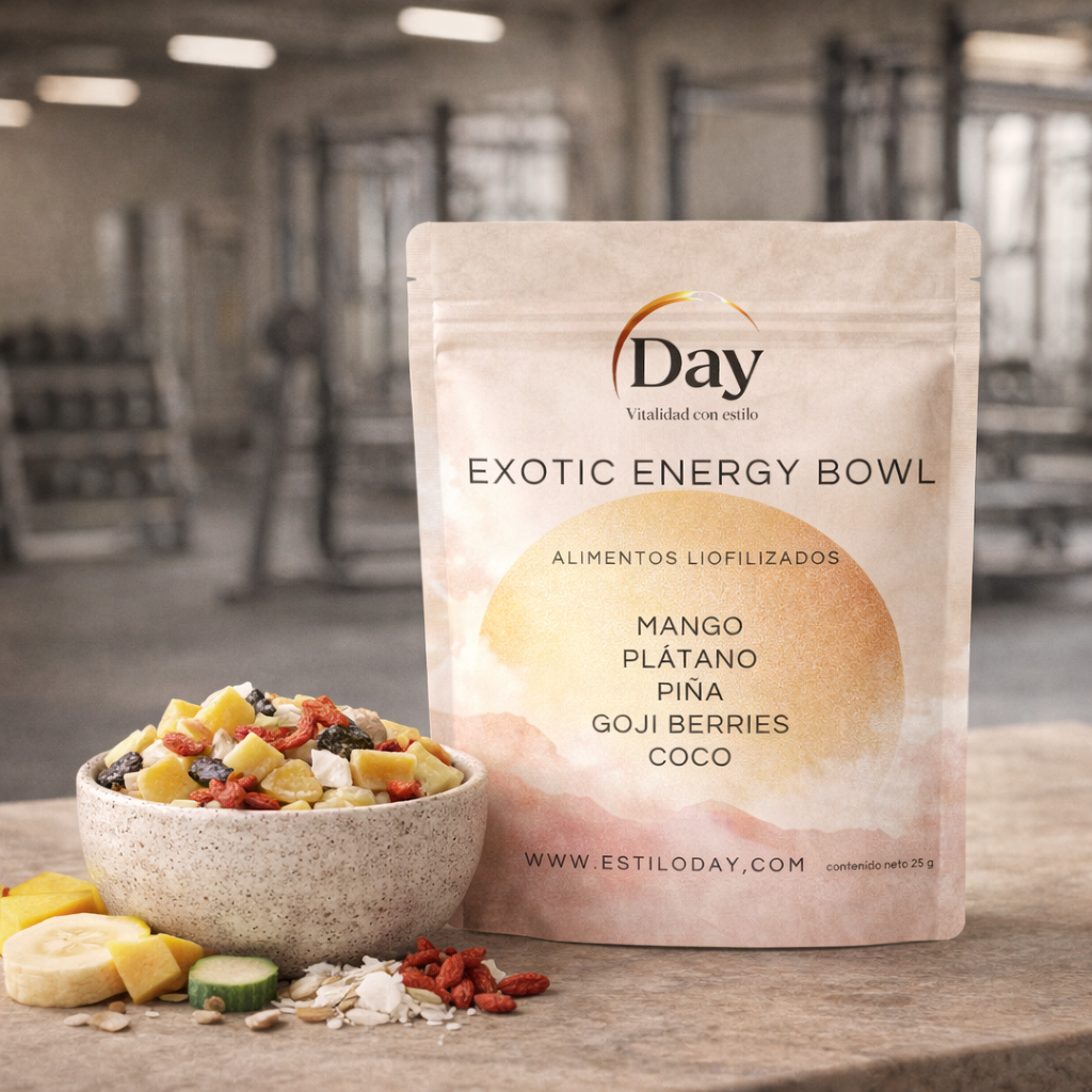Exotic Energy está hecho para subir el ritmo: mango, plátano y piña liofilizados con goji berries y coco en trozos.Sin polvos y con energía proveniente de fruta real, es un snack directo, delicioso y con gran aceptación sensorial.